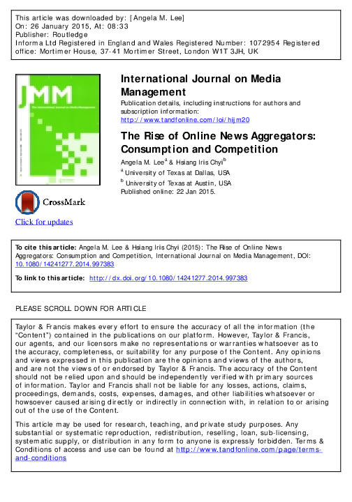 Pdf The Rise Of Online News Aggregators Consumption And Competition Angela M Lee And Iris Chyi Academia Edu