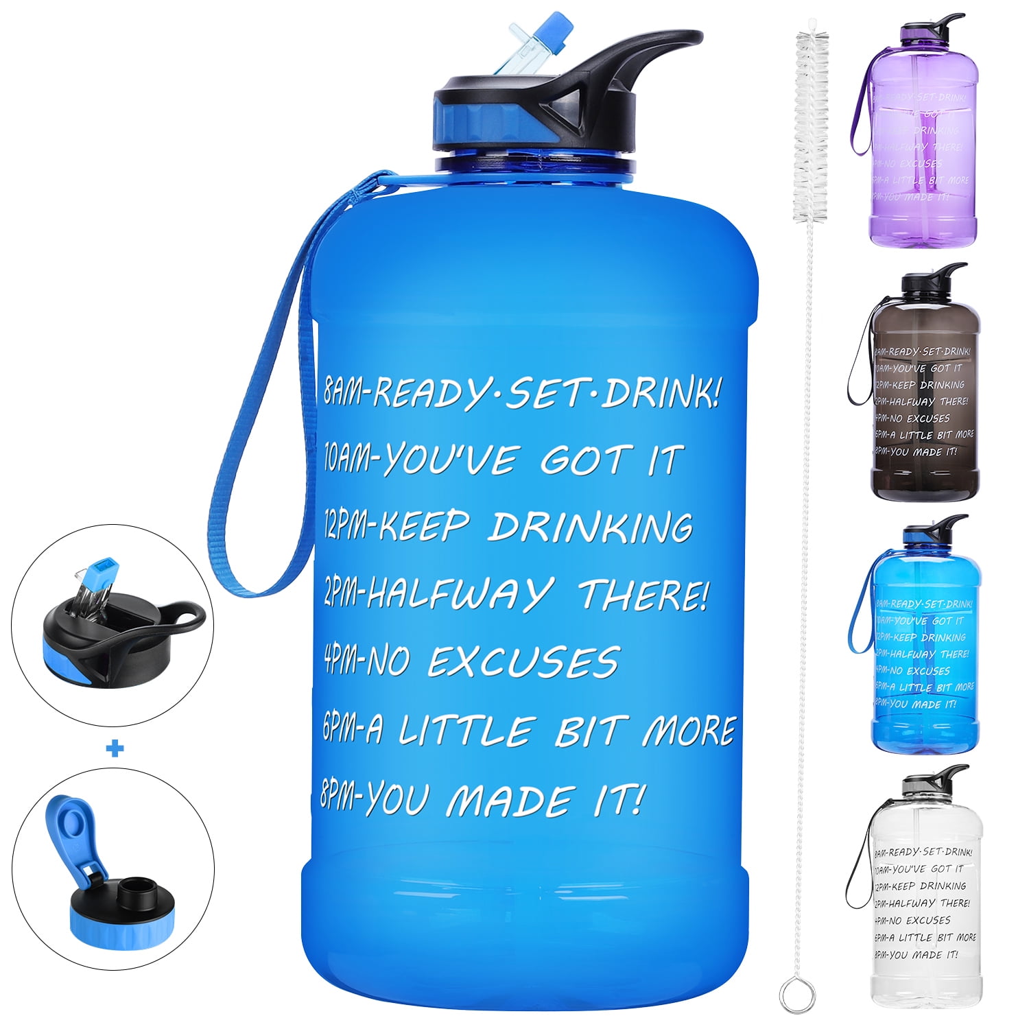 Kustar Gallon Water Bottle With Straw And Chug Lid 128oz Reusable Sport Water Bottle With Time Marker For Gym Training Hiking Travel Blue Walmart Com