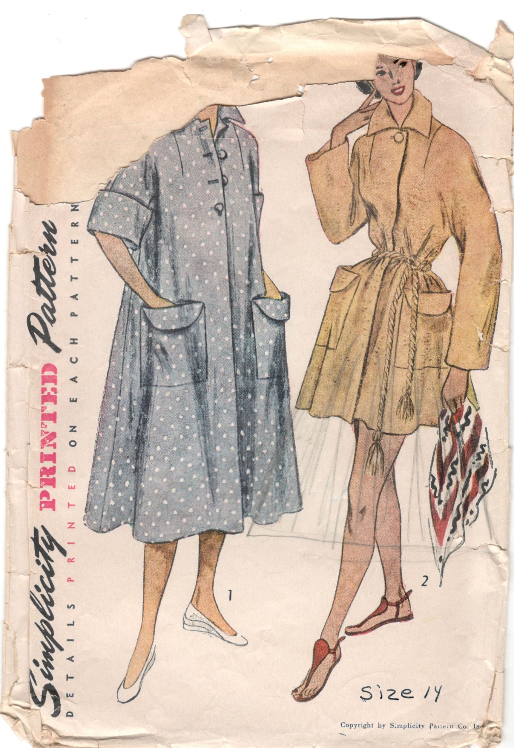 Simplicity 3592 1950s Misses Robe Pattern Kimono Sleeve Duster Etsy