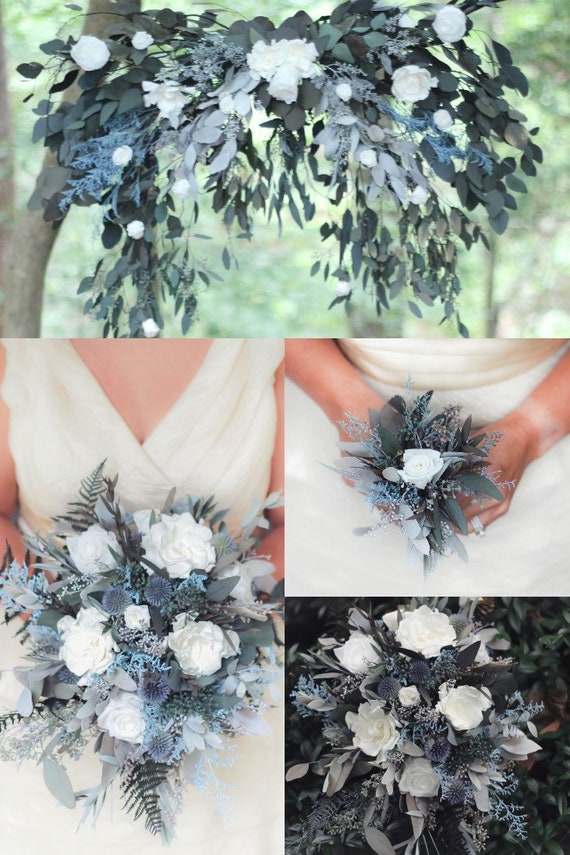 Winter Wedding Bouquet Dusty Blue Bouquet Navy Blue Wedding Bouquet Dried Flower Bouquet Blue Bouquet Real Flower Bouquet Eucalyptus Etsy